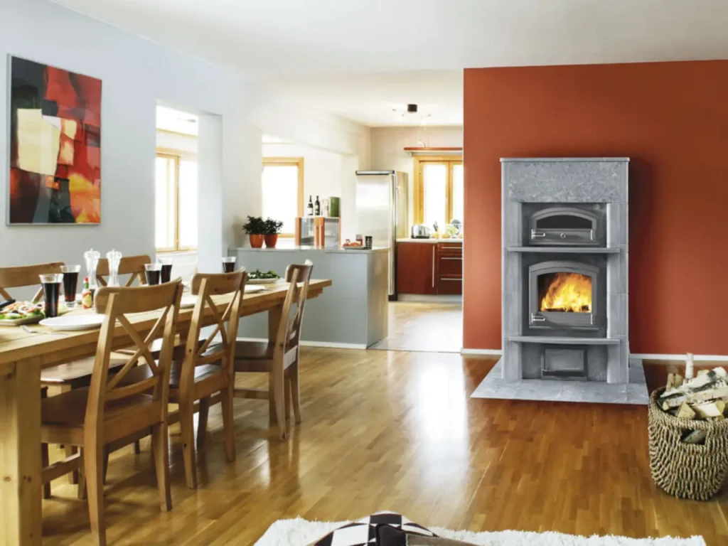 Poêle‑cheminée à accumulation avec four de cuisson intégré